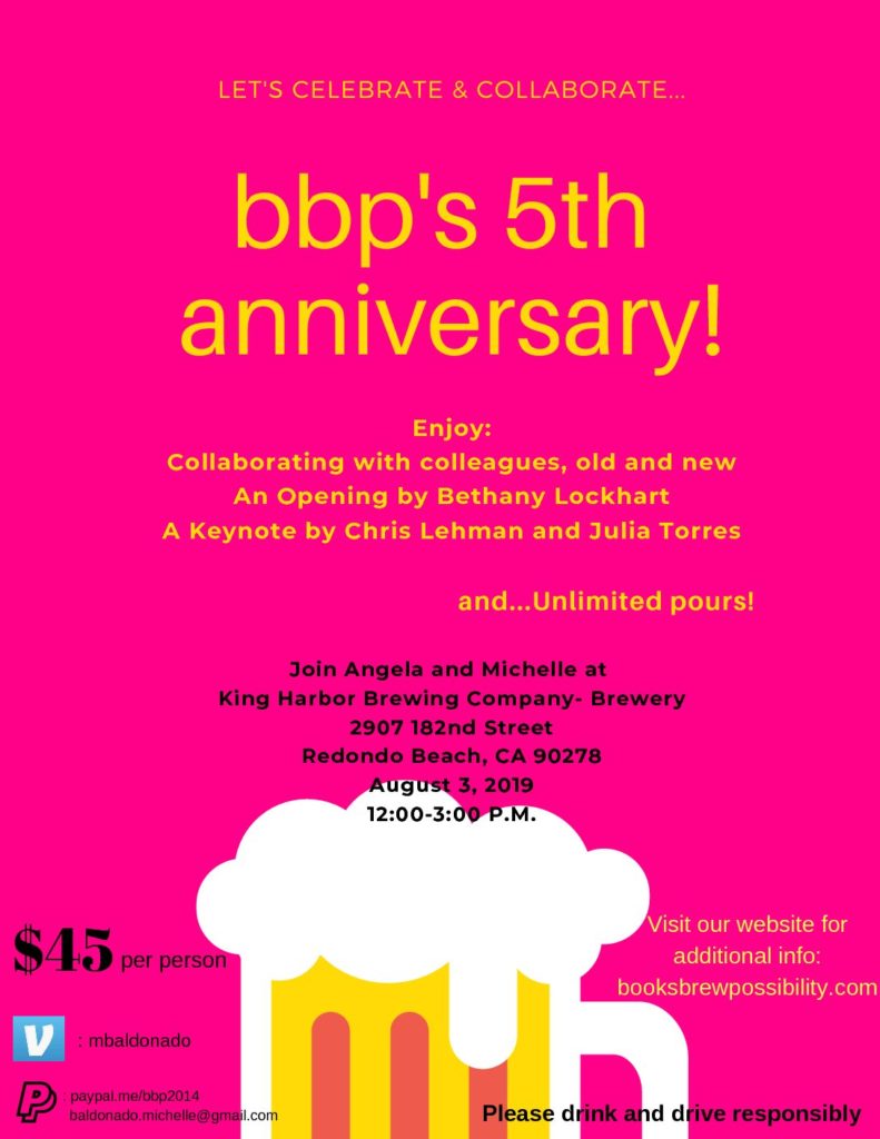 We will have King Harbor Brewery all to ourselves from 12:00 to 3:00 p.m. The $45 fee includes: opening and keynote, opportunity to meet and collaborate with old and new colleagues, bbp pint glass, and unlimited pours!